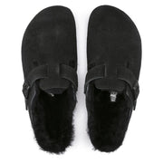 The bolder, the better! This exceptionally cozy version of the Boston clog, a classic BIRKENSTOCK model, is made of real, very high-quality suede. The shearling footbed and strap lining exudes style and keeps feet warm. The perfect shoe for cozy winter evenings by an open fire!
