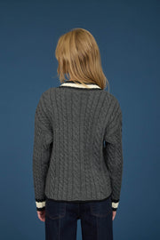 Contrast Stripe Trim Cable Knit Boyfriend Cardigan Grey