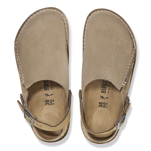 The Lutry Premium Suede Leather clog in Gray Taupe is a versatile shoe that can be worn two different ways. It features a convertible backstrap wit...