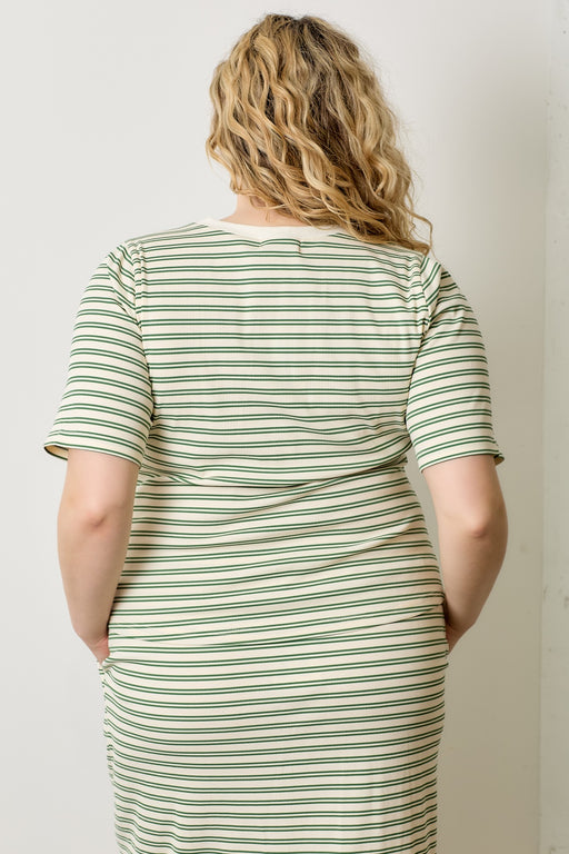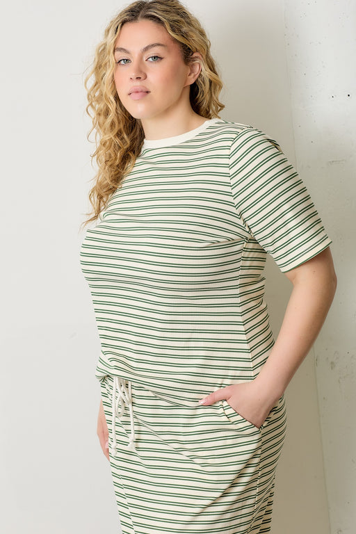 Elevate your casual style with this comfortable and chic Plus Striped Round Neck Top. This casual t-shirt features a classic round neck and short s...