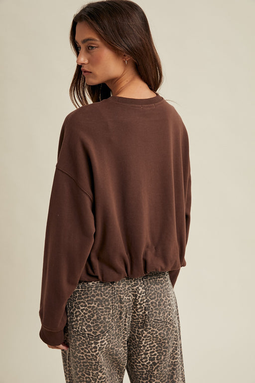 This cozy French terry top is the perfect blend of comfort and everyday style. Designed in a rich chocolate brown hue, it features a relaxed silhou...