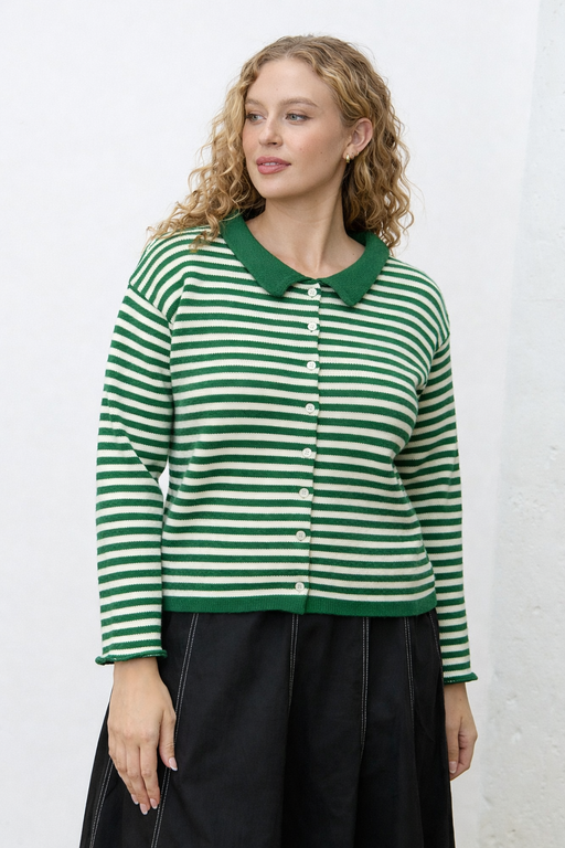 View full detailsStriped Sweater Cardigan - Green