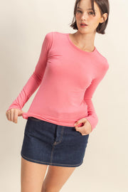Keywords: Long sleeve top, crew neck, basic shirt, layering.