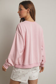 Soft, sweet, and effortlessly cozy, this pink sweatshirt features bold white “lover” lettering for a playful yet relaxed look. Designed with a comfortable oversized fit, it’s perfect for lounging, casual outings, or pairing with your favorite shorts or denim. The lightweight fleece feel makes it ideal for year-round wear.