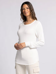 A true wardrobe essential, this classic long sleeve tee combines effortless style with ultimate comfort. Featuring a flattering crew neckline and a relaxed fit, it’s designed to move seamlessly from lounging to layering. The ultra-soft, stretchy fabric ensures a comfortable fit you'll want to wear on repeat.
