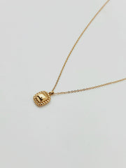 Expertly crafted with 18K gold, this square pendant necklace is the perfect accessory for any occasion. With its timeless design and high-quality material, it will elevate any outfit and add a touch of elegance to your look. Show off your style and sophistication with this stunning necklace.