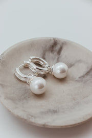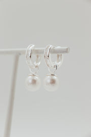 Sterling Silver Plated Jumbo Pearl & CZ Baguette Convertible Earring - 23690
