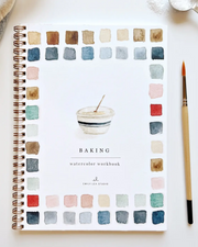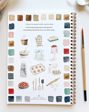 The Baking Watercolor Workbook includes 12 baking-themed illustrations with an example of the finished painting, step-by-step instructions, and a lightly illustrated sketch for you to paint. It's just like a coloring book, but with watercolor!