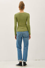 Effortless, flattering, and endlessly versatile — the Ribbed Notched Neck Top in Olive is the ultimate wardrobe essential for refined everyday wear. Crafted from a soft, stretchy ribbed knit, this top contours comfortably to your silhouette while offering breathable ease and movement. The delicate notched neckline adds a touch of modern femininity, making it perfect for layering under blazers, cardigans, or worn solo for a chic minimalist look.