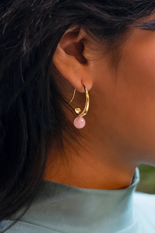 A timeless design with a soft pop of color, the Heirloom Hoops in Cherry Quartz add effortless charm to any look. The dainty pink stone and warm go...