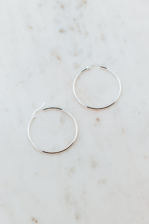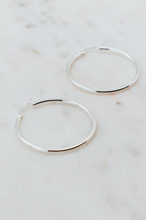 Crafted from high-quality silver, these 40mm hoop earrings are a timeless addition to any jewelry collection. The 40mm diameter provides a versatil...