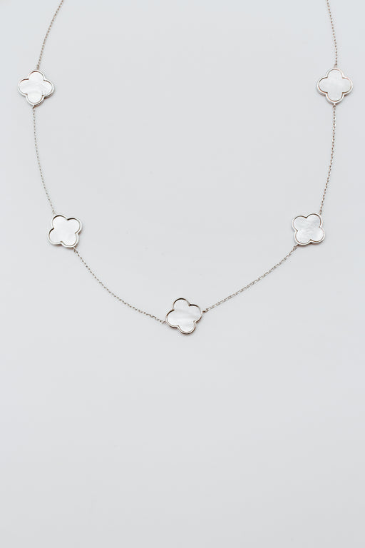 View full detailsRhodium Plated Jumbo MOP 5 Clover Station Necklace