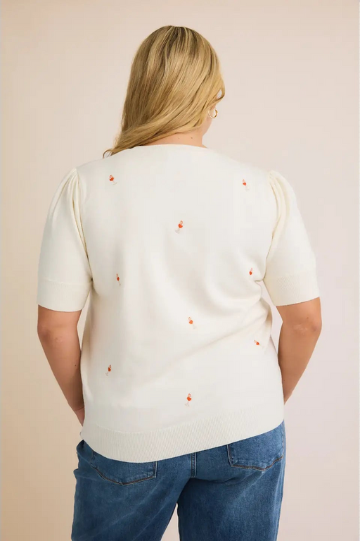 View full detailsEmbroidered Sweater Top w/ Puff Sleeve - Cream