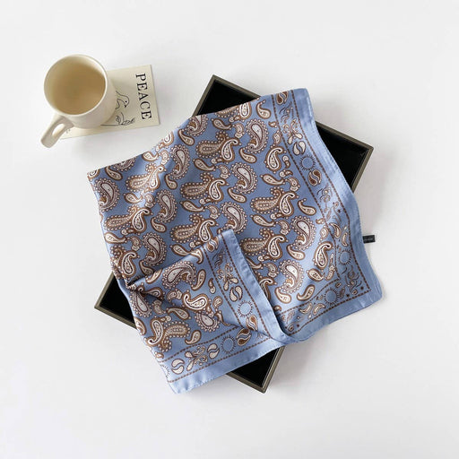 Chic and versatile, the Light Blue Paisley Satin Square Scarf is an elegant essential for effortless style. Crafted from a high-quality chiffon ble...