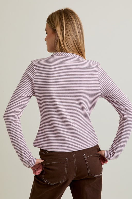 Add a versatile layer to your wardrobe with this Button Down Round Neck Top in Pink Brown Stripe, perfect for casual everyday wear. Featuring a rou...