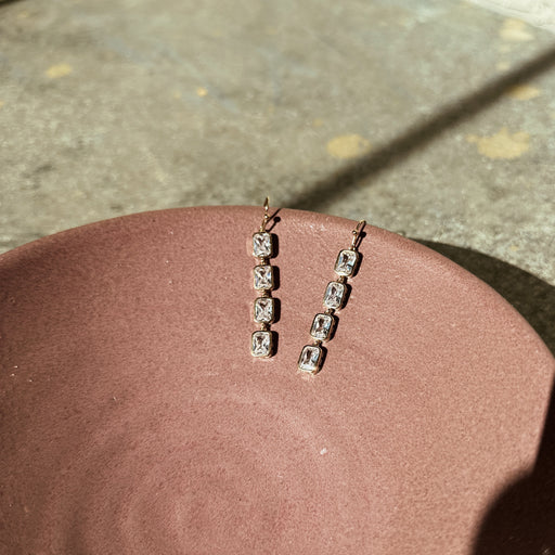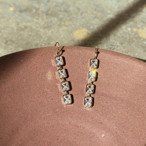 View full detailsGold Plated Quadruple Drop CZ Princess Bezel Earring • 23721 G