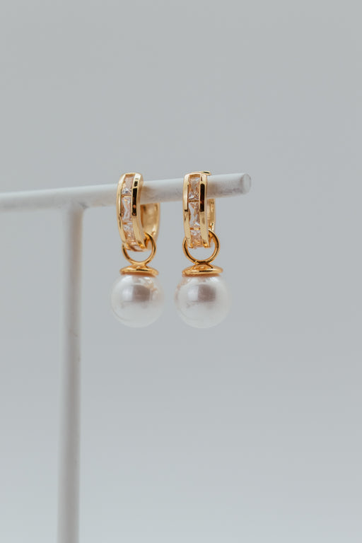 View full detailsGold 18K Plated Jumbo Pearl & CZ Baguette Convertible Earring - 23690