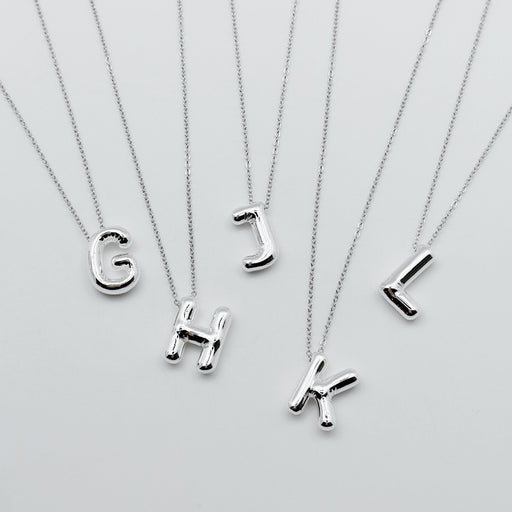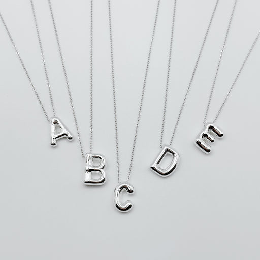 Make a bold and stylish statement with our Sterling Silver Plated Jumbo Bubble Initial Necklace. Featuring a large, bubble-style initial pendant, t...