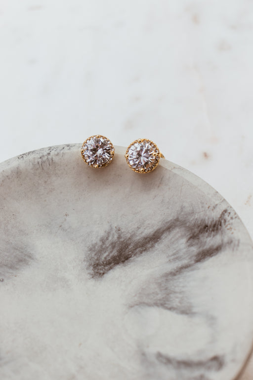These elegant Gold 8mm CZ Round Stud Earrings feature an 8mm CZ stone, delicately hand-crafted in a lustrous gold plated setting. With its perfect ...