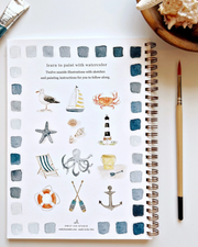 The Seaside Watercolor Workbook includes 12 coastal-themed illustrations with an example of the finished painting, step-by-step instructions, and a lightly illustrated sketch for you to paint. It's just like a coloring book, but with watercolor!