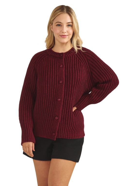 Cozy, classic, and beautifully textured, this Ribbed Button-Up Cardigan in Wine is the perfect cool-weather staple for effortless everyday style. D...
