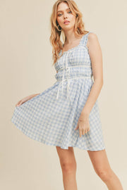 Sweet and playful with a vintage-inspired charm, the Gingham Mini Dress – Blue is made for sunny days. Featuring a classic gingham print, this flared A-line silhouette offers a light, feminine feel perfect for spring and summer.