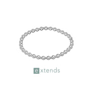 Hand beaded with smooth 4mm sterling silver beads and strung on high-performance elastic, this bracelet offers a comfortable stretch that easily rolls on and off the wrist. Part of the Extends collection, it measures 7.25”, making it ideal for those who prefer an extended fit. Designed for worry-free wear, you can sleep, shower, and sweat in it without hesitation.