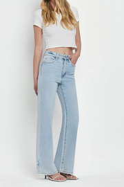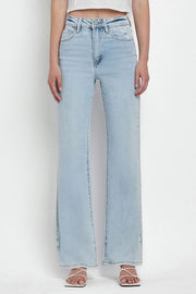 Embrace a throwback look with our 90's Vintage Super High Rise Flare Jeans. These jeans are made from comfort stretch denim with a super high rise waist for a flattering fit. The 90's vintage style is complete with distressed details and a finished hem. With their full length and flare design, these jeans are a statement piece for any wardrobe.