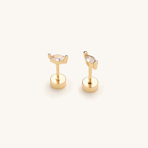 The Flat Back Gold Marquise Crystal Studs by Nikki Smith are a sleek, modern essential designed for everyday comfort and effortless sparkle. Featur...