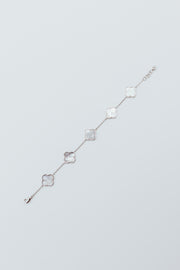 Silver & White 5 Mother Pearl Clover Station Bracelet - 23156