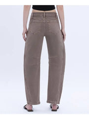 Crafted with a comfortable high rise and gentle structure, these jeans feature curved seam detailing along the legs—adding subtle dimension and giving the classic barrel shape its signature look. The ankle-length cut makes styling simple with sandals, sneakers, or booties.