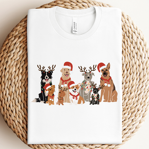 Celebrate the holidays with your furry friends in style! The Christmas Dog Graphic Tee features an adorable lineup of festive pups dressed in Santa...