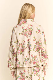 Soft, feminine, and effortlessly cozy — the Floral Half Zip Pullover brings a romantic touch to your everyday wardrobe. Featuring a delicate allover floral print on a neutral base, this relaxed pullover blends vintage charm with modern comfort.