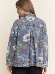 Elevate your everyday style with the Floral Print Denim Jacket, a perfect blend of laid-back denim and feminine charm. This statement jacket features an all-over vintage floral pattern that brings bold personality to a classic silhouette. With its relaxed fit and soft washed finish, it layers effortlessly over tanks, tees, sweaters, and dresses for year-round wear.