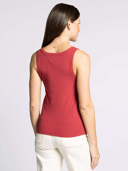 The Clarkson Tank in garnet red is a sleeveless tank with a scoop neckline. Product Details: Color: Garnet Red Design: Sleeveless tank, scoo...