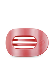 Lay flat and relax with the new TELETIES Calming Coral Large Flat Round Hair Clip in Red. This innovative hair clip is designed to allow you to lay back flat, do yoga, or sit comfortably in a seat with a headrest. It's made with the same material that is nearly unbreakable, ensuring long-lasting durability. The large size is 4.5 inches long.