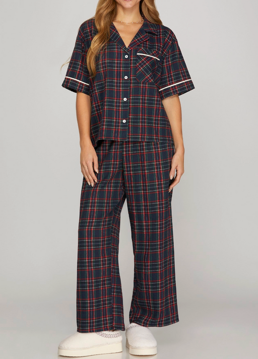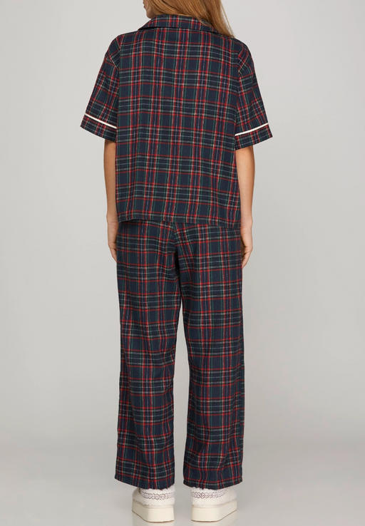 Experience cozy sophistication in this Luxury Plaid Pajama Set – Navy, designed for women who embrace both comfort and confidence. Crafted from a s...