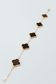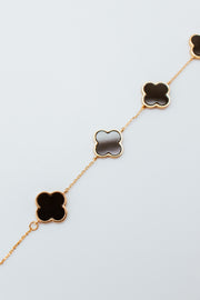 Gold & Black 5 Mother Pearl Clover Station Bracelet - 23156