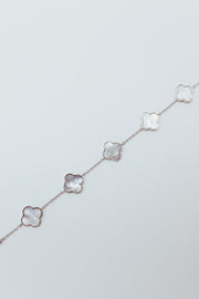 Silver & White 5 Mother Pearl Clover Station Bracelet - 23156