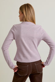 Add a versatile layer to your wardrobe with this Button Down Round Neck Top in Pink Brown Stripe, perfect for casual everyday wear. Featuring a round neckline, button-down front, and a soft striped fabric, this top offers a comfortable fit—ideal for pairing with jeans or skirts.