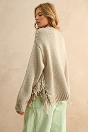 Add a bold touch of artistry to your wardrobe with this luxury fringe sweater top, designed to blend cozy comfort with high-end style. Crafted from a premium knit blend of acrylic, nylon, wool, and polyester, it offers warmth with a lightweight feel, making it perfect for layering throughout the seasons. The relaxed silhouette and high neckline create an effortlessly chic shape, while the statement fringe detail along the side adds modern movement and texture for a fearless twist on a classic knit.