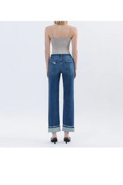 Redefine everyday elegance with the Vervet Victoria High Rise Cuffed Straight Jeans in Nico, crafted for women who embrace both sophistication and fearless confidence. Designed from a premium cotton-rich comfort stretch blend, these jeans sculpt your shape with a flattering high-rise waist while offering the flexibility to move with ease. The straight-leg cut creates a clean, modern silhouette, balanced by ankle-length tailoring and a polished cuffed hem. Subtle distressed details add just the right amount of character, striking the perfect harmony between refined and relaxed. Pair them with sleek heels for an elevated evening look, or dress them down with sandals and a tee for chic daytime appeal. The Victoria is a versatile wardrobe staple that embodies the B-Fearless ethos: bold, timeless, and unapologetically confident.